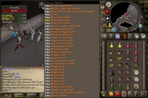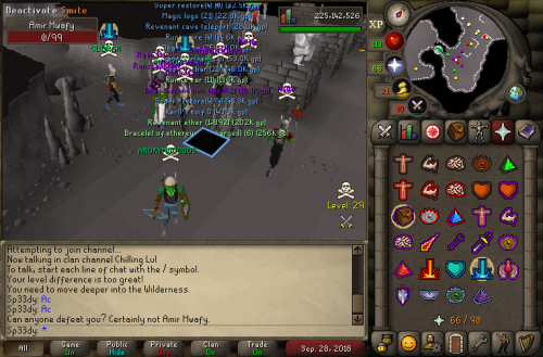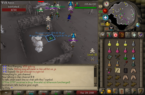 Headed out into the wilderness with high hopes of filling our looting bags and sure enough we found evo making quick work of them before sending them off to beg parent clan to MASS UP ? We continued hopping around bumping into a little skirmish of Rev/CT fighting each other so we decided to kill whoever we could before it ended