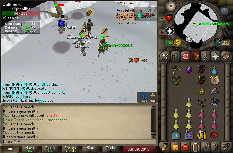 drops included rune sword, crystal key, dragon stone, yew seed and arma helm...probably the worst luck on a trip ive ever had...only have two pics os buddy messed up