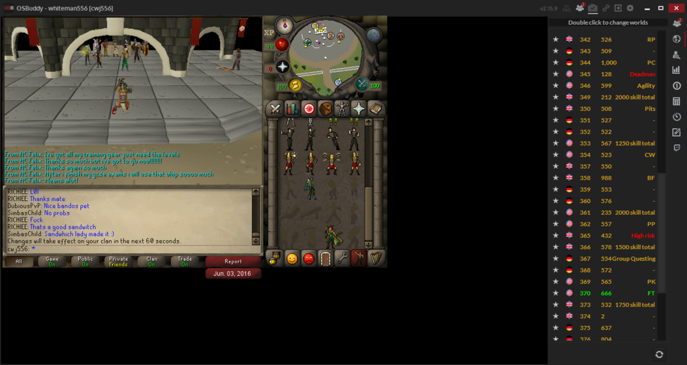 as some people know if you kill wyverns only worlds which are free are pvp worlds! and people just want a easy life and they hop there! went to day with a friend of mine 2 see what it was like and how easy it was! well the more people the betta 4 plus poeple and no1 will get away! some mele pvmer risk bank as you see! think we should do a trip there soon easy to lose agro as it only takes 10-15mins at the most we was attacking this person in max gear! think what he would of lost? easy 30-40md