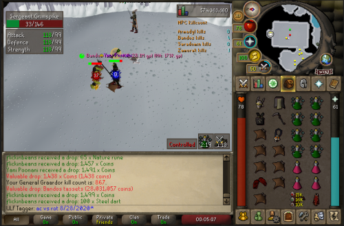 AC decided to go out to the wildereness to find a team to fight and after a hour we ran into PD. From the start they was getting slayed and they kept returning to get 1 banged. SV crashed but retreated back to GDZ so we got a quick bank and teled up to glory hill and baited them It was a quick sweep and looked at the rag they was wearing and decided not to give them the free loot. SV Quick Sweep - Copy.mp4 So AC went back out and ended up clearing a random team. Lots of action for us today and easy loot Clearing Team at Vet'ion - Copy.mp4