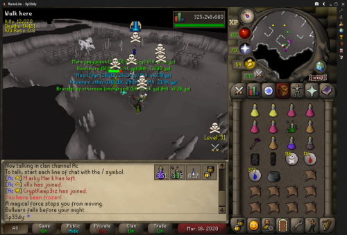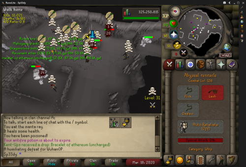 AC decided to go anti pk at Callisto didn't see much until we got rushed. At that point we geared and went to annakarl and punished them one by one as they teled up and they didn't return. We then moved to Vet`ion and found a small team which didn't return either and finished off killing PVMers. Not much out tonight but overall free loot.