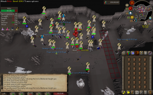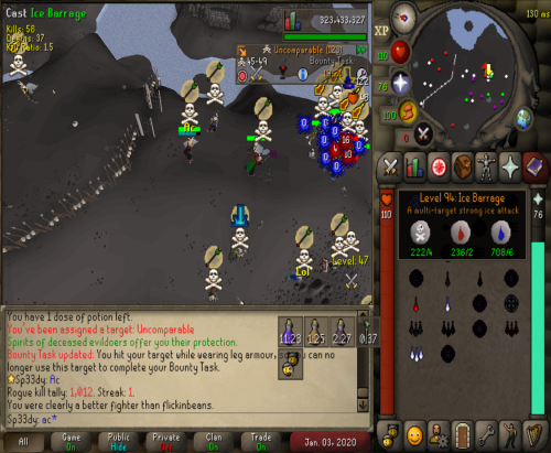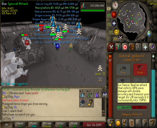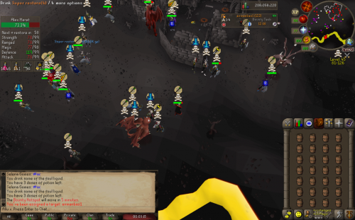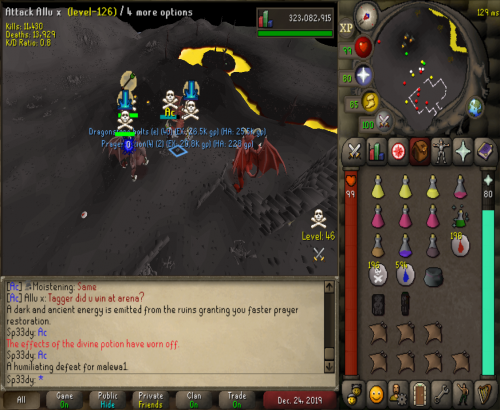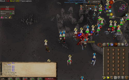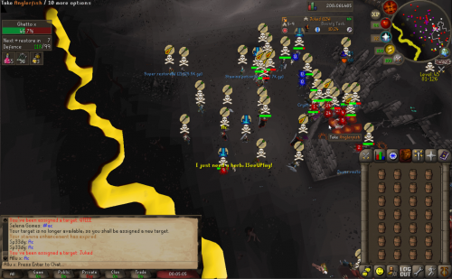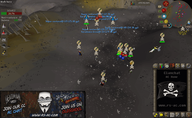 Headed out to Vet`ion and ran into a few Jaja Kids ended up making over 10m from them. After we destroyed them we headed out to GDZ to find Vengeance. After clearing them they came back with numbers but we carried on and they ended up giving up and wouldn't tele up to carry on the fight. AC Outlasted and took the win