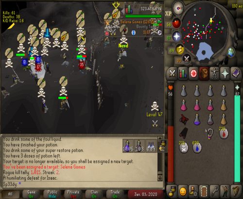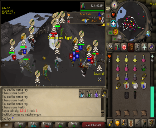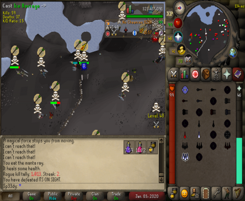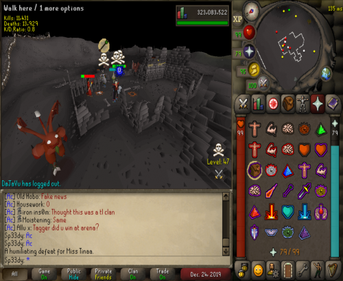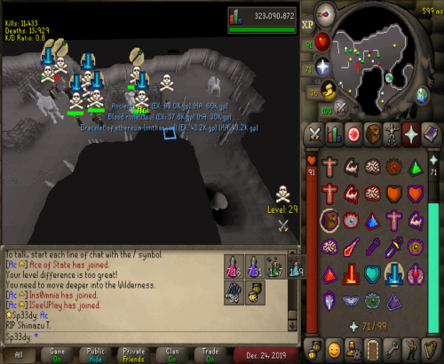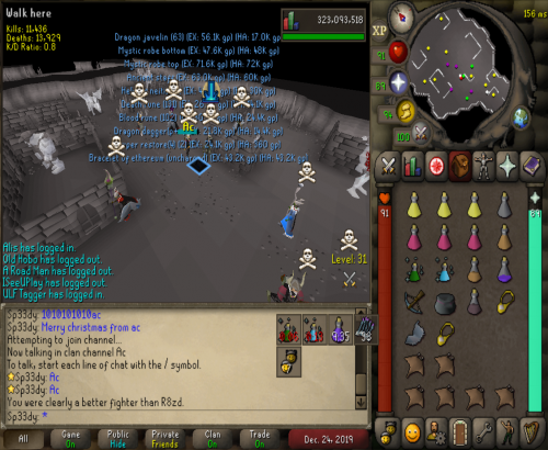 So we decided to go to Vet'ion to see what teams was about and ran into Override and cleared them 3 times and after we ran over them we went deep to castle and found a few kids got a few juicy kills then took a break for a hour. We saw Vengeance and a few jaja kids at GDZ we cleared them after a 30min fight and took ending and they tried fighting us again but this time in rag gear so we left them to loot there own bodys. Overall gf