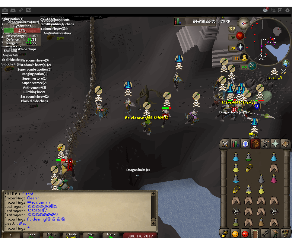 Decided to get a pking trip going we hopped around at bear for awhile and found no action Finally we headed towards Gdz where we quickly met up with Explicit where the action stay hot for 45minutes After Fighting for so long they finally decided we won and ran off to teleport out Thanks for returning boys! we are making Anonymous GREAT again #AC