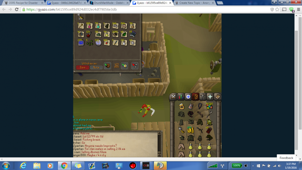 So we went on a pk trip today. Not the most action just killing random noobs here and there getting some average loot nothing special. We moved to the wizard tower area and were pking around there when our scout (MrSimerly) was being attacked by a lvl 70s noob and we told him to run to the wizard tower. At that time Wiggled's team came to rush us at wizard tower. We ran to the basement where it was single and let them come think we were running away. After telling everyone to go up we started dropping kids left and right (2 kids one left and 1 right). We killed a 117 and Tubz started to panic but we caught a freeze on him. Wiggled's team has been getting cocky and we finally caught them slipping up. AC Pordy got the kill and it was 108m bank key. Awesome job guys and I couldn't be any prouder. Btw NONE OF US DIED. We all got out safe and enjoyed our split of about 7-8m after adding up the items. Link to the vid is at the bottom https://www.youtube.com/watch?v=dRsBZpJVMw4