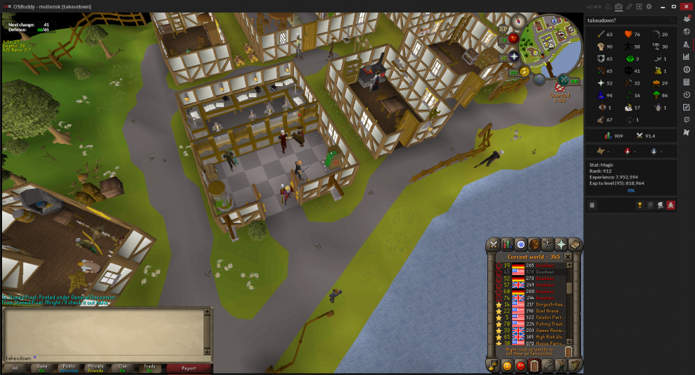 Hey there folks. I've been playing deadman mode from just about the start, and have trained alongside many others to make money and skill, and have also watched many others quit. I still play to this day, but am wondering if there was something I did that has led me to a poor moneymaking/training method. 24/7 pkers get money and training at the same time, which has led me only to 92 combat albeit with barrage. I have seen Camelot bank for the first time in a while today, which contained roughly 3 to 4 people, on WORLD 345. Yes, it was right after a RoT raid and there were many piles on the ground, but can that really even be compared to the dozens and dozens of people that once filled that bank? It's no secret that Deadman numbers are dwindling and currently sit at ~1,800 people throughout all worlds. There was a topic on the Zybez forums in which EOMERI A.K.A. 0starijengi (leader of #fools clan), in response to an ex-DI member's thread stated: 'Rot will dominate U.S.A. timezone and Fools will own Finnish/European timezone, and that's the way it will be until Deadman dies/shuts down' I am currently trying to find the topic to link into the URL, however the OP began taking a lot of hate from the comments (possibly due to bad blood between him and other clans/members. What could Jagex's announcement on Thursday possibly be? How low will Deadman numbers sink before all of the skillers are wiped out and there are no more supplies left? I used to not be in favor of this, not even in the slightest due to all of the time I have put into my Deadman account, but would any of you guys actually prefer a restart, or do you think history will just repeat itself. I am looking forward to hearing everybody's thoughts. I posted a topic a little while back about the war on rot and taking over a few places around Runescape. None of what's currently happened to the game mode leads be to believe that is a pipe dream or 'too hard to accomplish,' but I'm afraid while we're training, the rest of the community will simply quit and supplies will become null. Yew logs have risen from 430-450gp each to 550-570gp each, Sharks have gone up from 750gp each to 1k each, abyssal whips rose again after their crash, so on and so forth. Will this announcement make or break it all? This is actually quite amusing when viewed from an objective perspective as Deadman mode is almost akin to political power struggle and the laws imposed on the different parties involved, i.e. safezones and multicombat to United Nations war-free zones and international waters XD. ALL OF THE PICTURES BELOW ARE TAKEN IN WORLD 345. \ I probably don't have to post this as well, but here's the world list and how many people are in each world. The reason why I snapped this shot is because, I've seen it low before, but never this low despite the time at night.