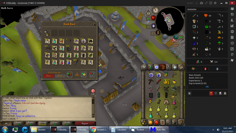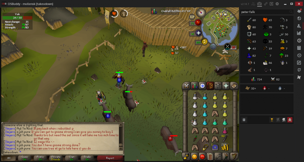I am no longer in possession of those items I sold em. However, when nearby people witnessed my pk, I was not only jumped by the 'main' noob account that was also trying to steal the 102 kill, but also 2 suiciders. Had to to up into the 1x1 square in the lumby castle tower until I could hop in peace Very niice @ the 2k iron knives. Those are great for range training. I like to wear team capes around everywhere with right click hidden/auto retaliate & spec on just waiting for people who also have team capes to misclick on me It's only worked once so far, but felt bad for the guy as he genuinely didn't know why he skulled, gave him 1/4th of his bank back (his bank was only ~71k) -