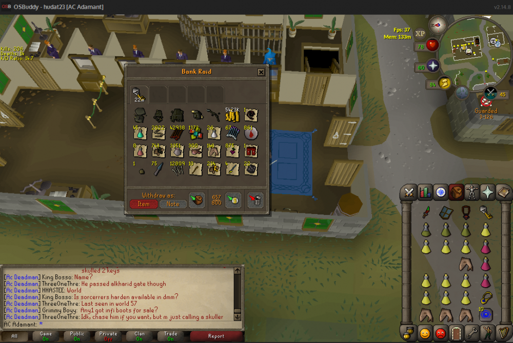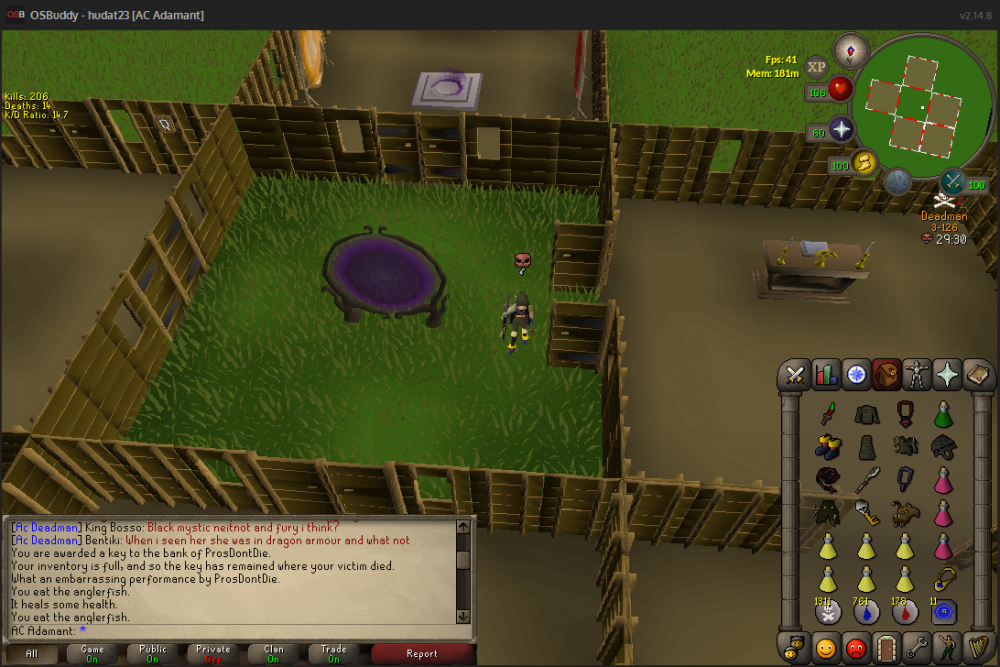 Sooooo... grim loses about 50m deadman so he gets on 07 to on my account to stake. Starts with 60m leaves with almost 140m cash, and I'm like "let me do some staking now"; lose my 15m cash and I get on like a 4 loss streak so I'm like fuck this and I do sell all my gear and get about 25m cash stake it and win. So I'm like Grim I'm doing double or nothing so I'm sitting there waiting for a stake and I say if in one minute I don't get a stake I'm not doing it. I get the stake and we go in for 100m pot. The stake was even looking a little bit more in the the other persons favor. I get down to 5 hp she has 24 hp she hits a 5 right when I regenerate 1 hp and so it's down to pid I hit a 24 and win the stake. LET'S GO BOYZZZ