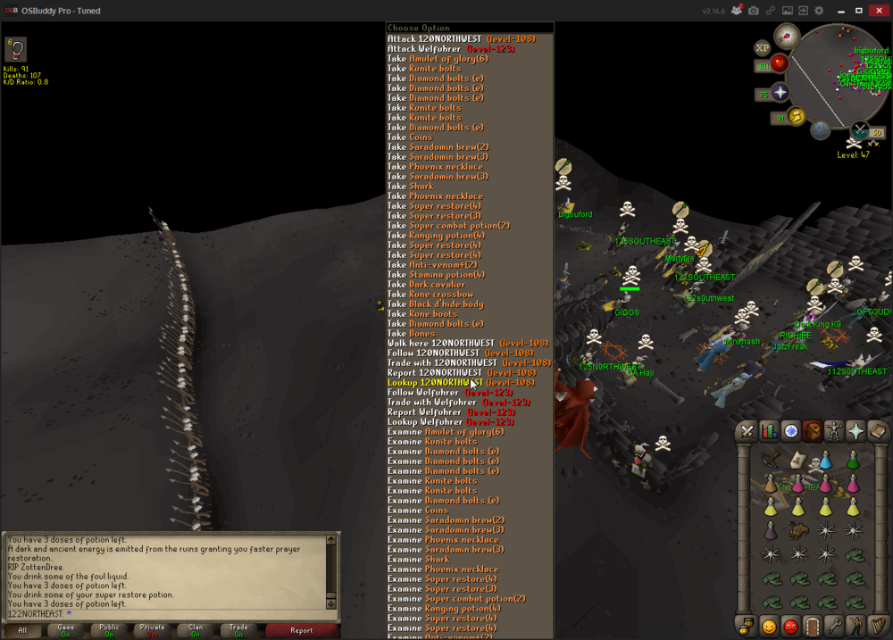 We massed up today looking for a scrap starting off at GDZ, after running into DI and clearing them we moved to Callisto. We then started looking around lavas and Callisto then moving back to GDZ and found TUF who logged in and started to fight, with the 25 warriors we ended up clearing TUF 30 minutes into fighting with endless barrage and chin piles. After taking an ending we looked around for another scrap. We found TUF again at dwarves and started to scrap but after 10-15 minutes in they started to run, good job to everyone who came tonight