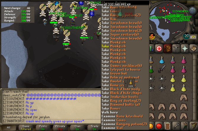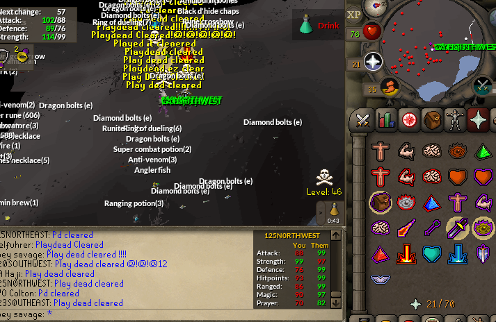 We decided to go out and see what loot we could find right after we ended our Inners. We had a solid 25+ man squad and ventured off starting at GDZ, hopping around for 5-10 mins we found nothing and one of are members called out there was a team @ New Gate hill so we all ran over and the fight began. Play Dead had about the same # of ops as us and couldn't handle are piles/transitions so it only lasted about 15 mins till they ran. Clearing New gate we went back to GDZ bumping into AF attempting to Dbow/Godsword for a +1 but failing quickly clearing them up. One of our members scouted RoT and we gave it a shot fighting them but they started gaining and we didn't have any magers thanks for the scrap. Was a fun trip way to fight through it boys #AC