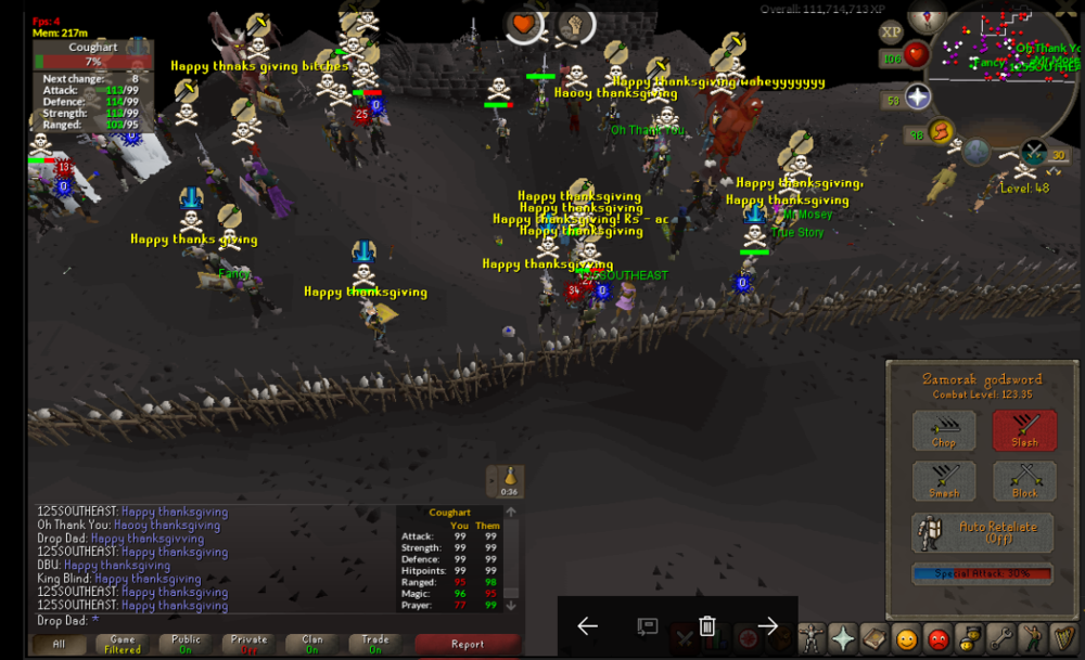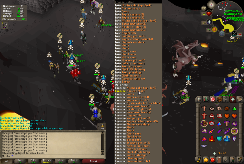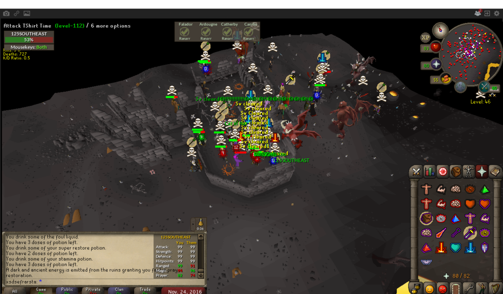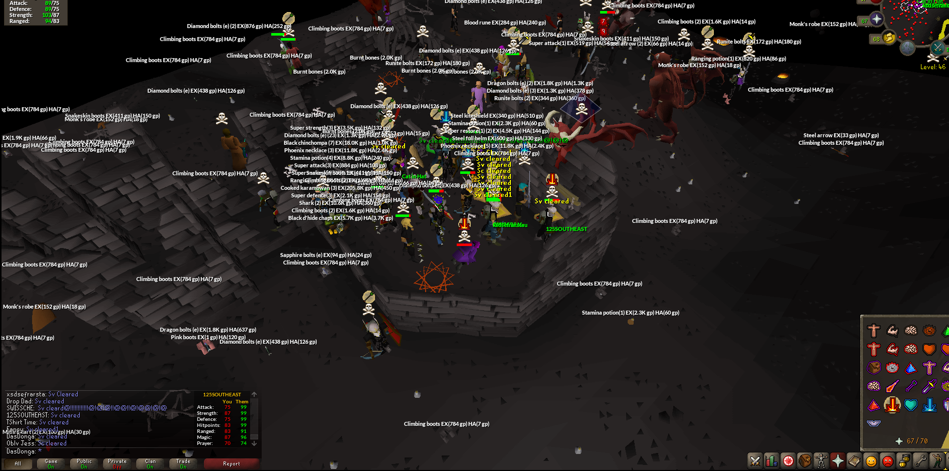 Went on a late night pk trip going to slay some GMT noobs when we bumped into a noob clan where the fight began. 5 mins in we ran into SV and the real fight started, it went on from GDZ, to New Gate, and ended back in GDZ. The fight lasted about 2 hours total are numbers and transition kept us in the game until SV was cleared where we got an ending making some serious bank lootations. Great job for everyone that came we showed what AC's GMT was about!