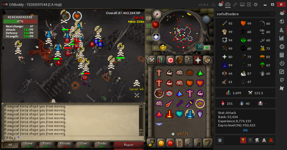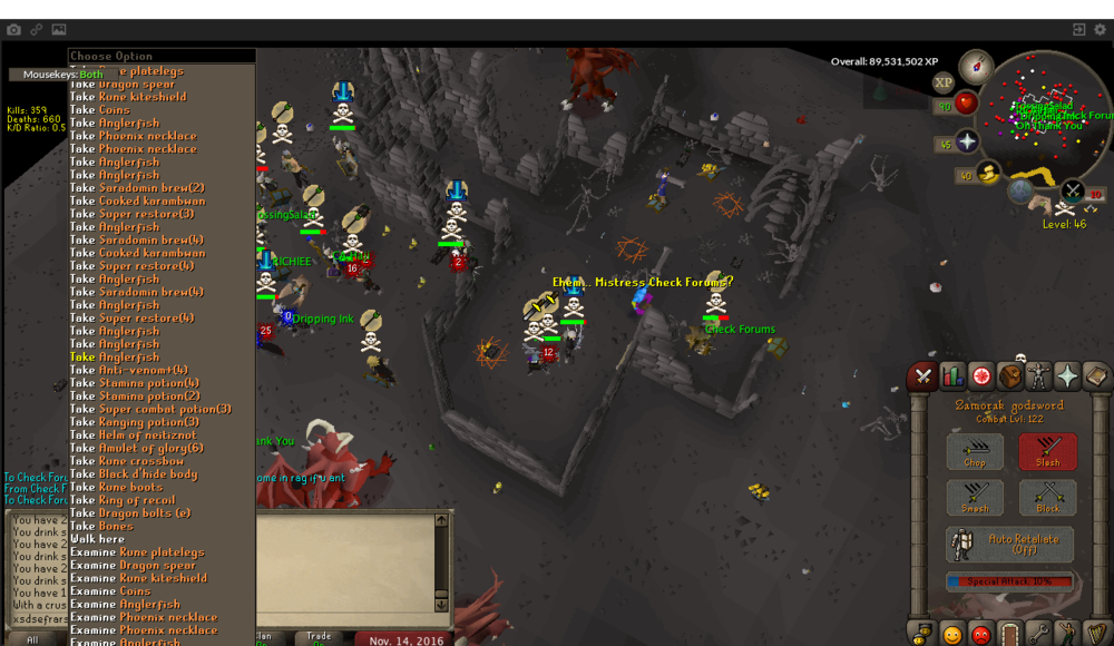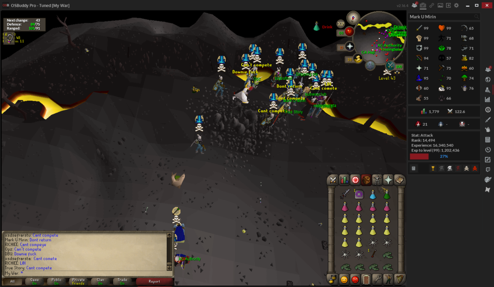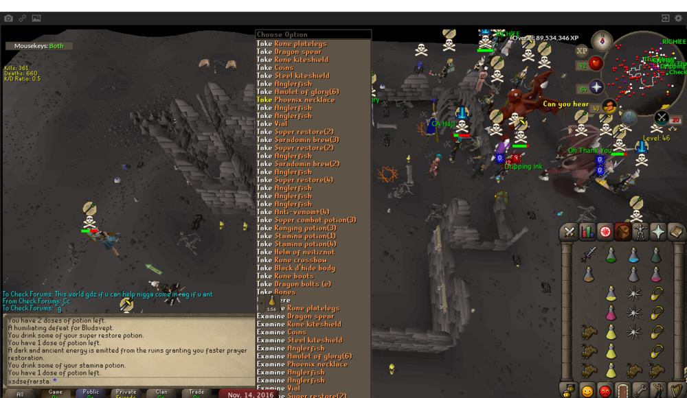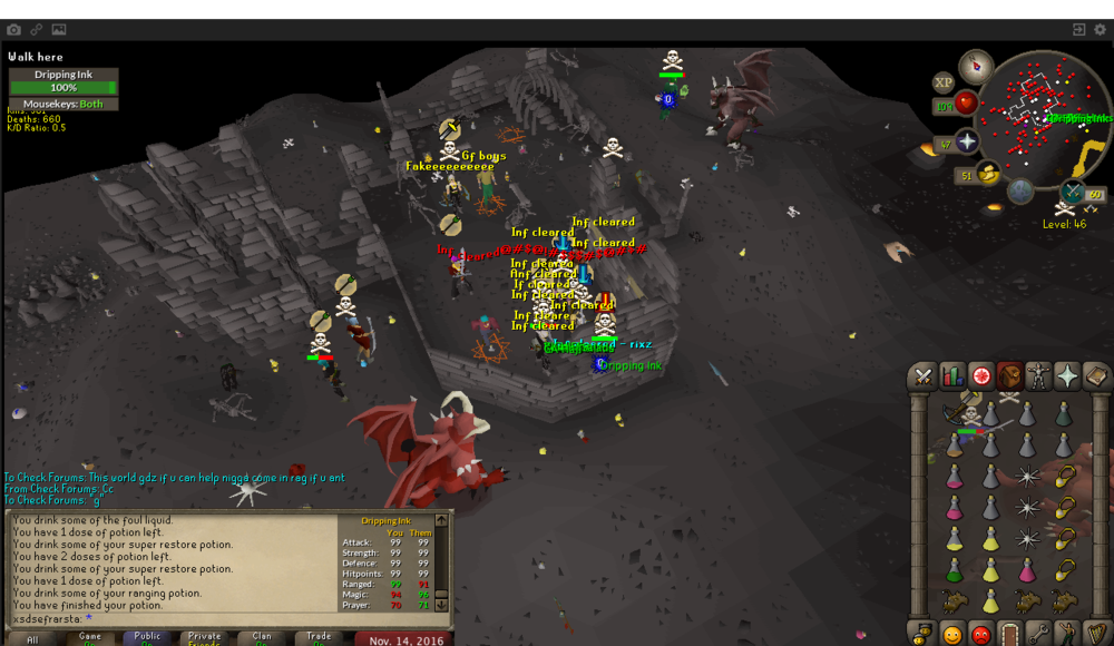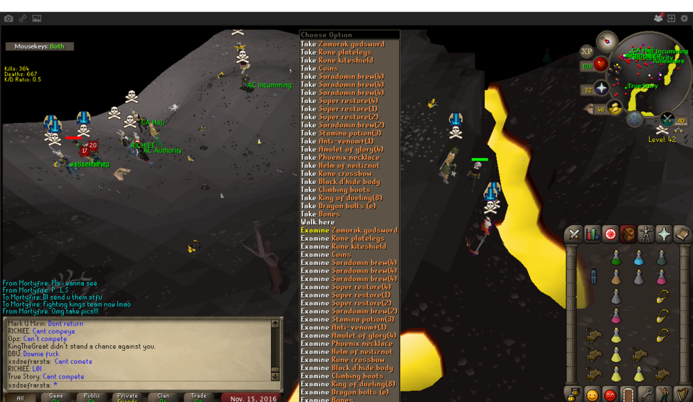 One of our members scouted Hacked2max's clan out again so we quickly got some numbers massed up to go out and claim some more loot. Hopping around Bear tree we bumped into Kingthedownie and instantly teled up without hesitating to clear his whole team for some free sets. Nice try stepping into our wild, and thanks for the easy money and a free ZGS. #AC