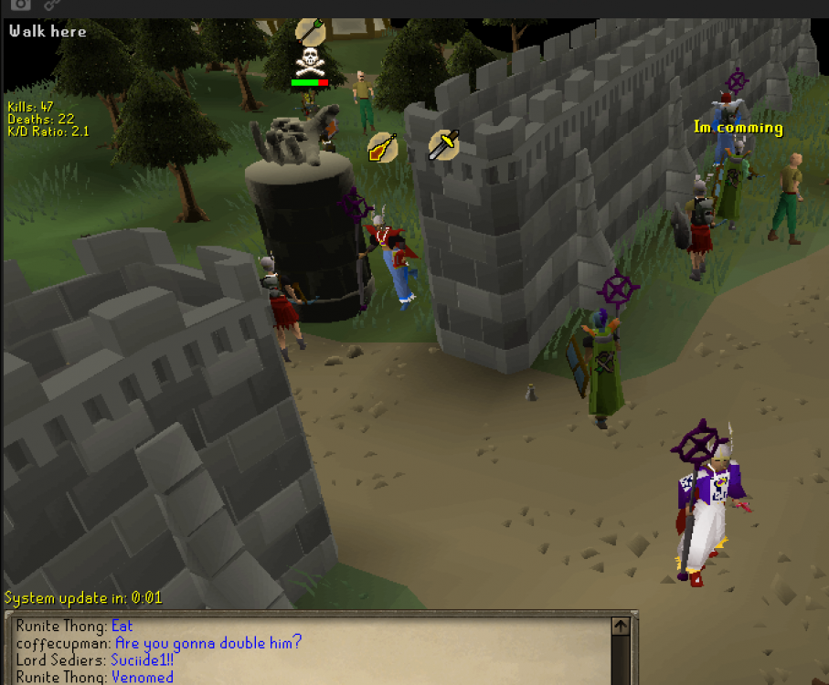 Usual nightly pk trip when we find Sparc Mac. Did well taking turns doing damage on him at edge bank till his help arrives. Random people show up like dmcc and a tata kid then lit and other teams start to come and they all get into a brawl haha. Some close calls from AC but no deaths. Night ended when there was a system update but there was a lot of action in front of ge for a bit. ps, sorry for the shit pics I wish I could've recorded some stuff.