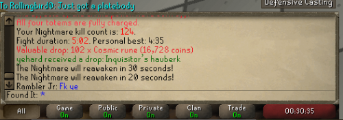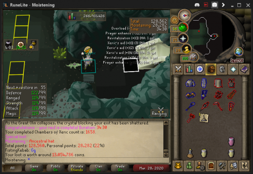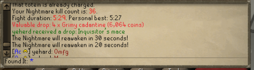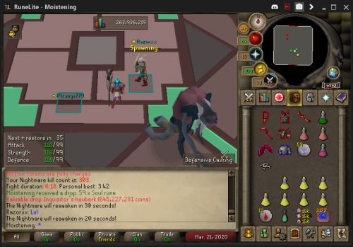 Safe to say AC has made well over 10B for its members in PVM alone through the first few weeks of this quarantine. Here's a little summary of the drops. Feel free to add any I missed! Grats to everyone who's been grinding, keep it up! 6x Inquisitor Hauberk 8x Inquisitor Plateskirt 3x Inquisitor Mace 1x Nightmare Pet 1x Volatile Orb 1x Eldritch Orb 1x Harmonized Orb 1x Draconic Visage 1x Saradomin Hilt 2x Twisted Bow 1x Ancestral Hat 1x Ancestral Robe Top 1x Arcane Prayer Scroll 2x Dexterous Prayer Scroll 1x Justiciar Faceguard 1x Blade of Saeldor