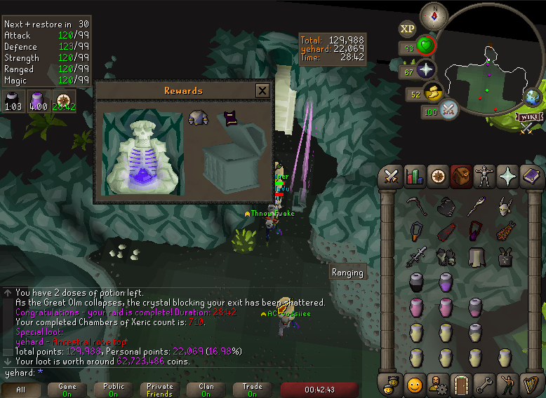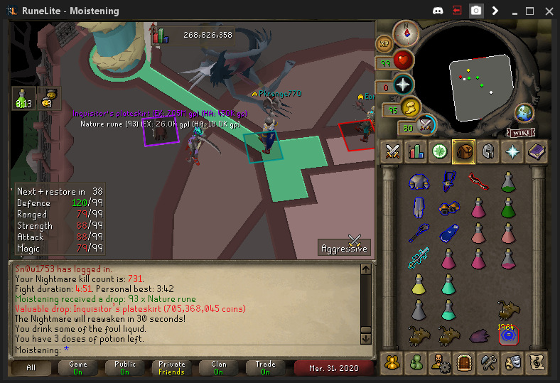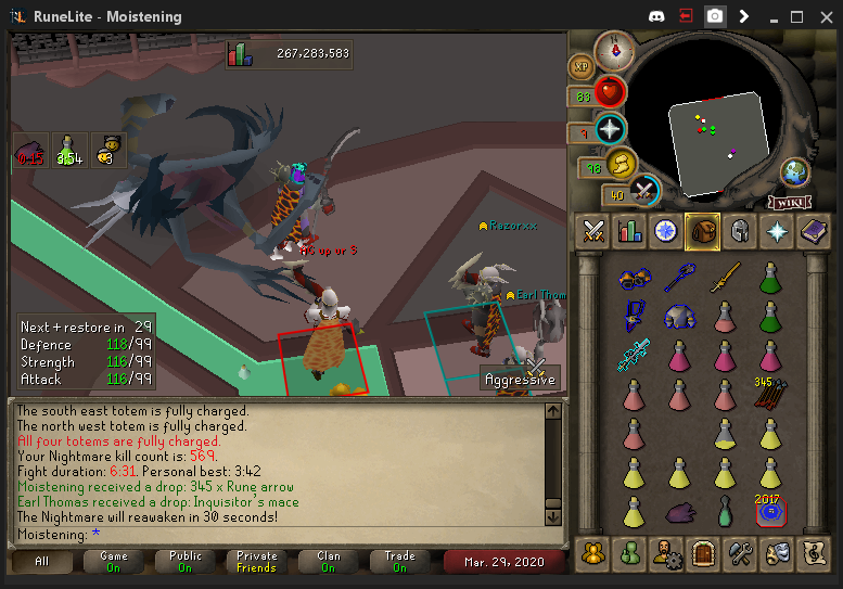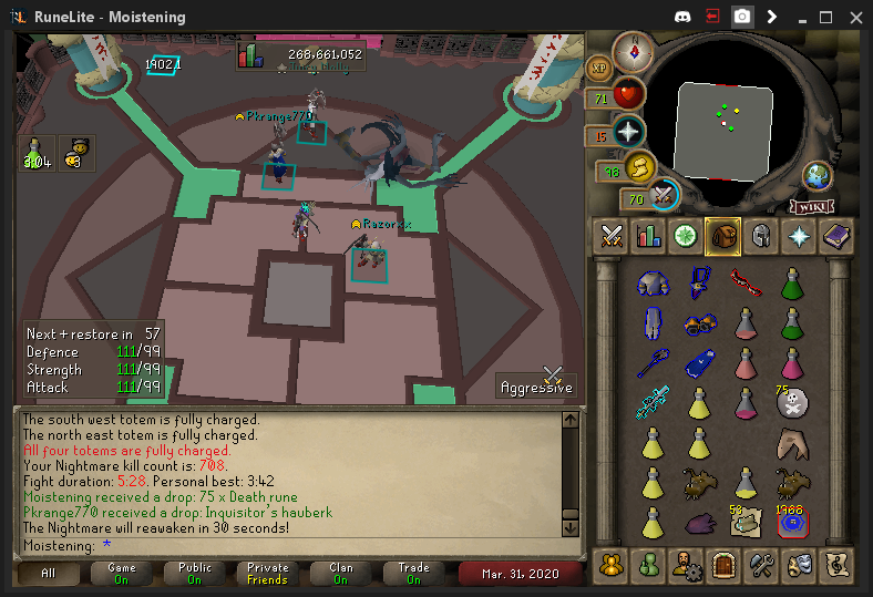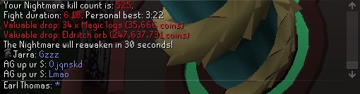Safe to say AC has made well over 10B for its members in PVM alone through the first few weeks of this quarantine. Here's a little summary of the drops. Feel free to add any I missed! Grats to everyone who's been grinding, keep it up! 6x Inquisitor Hauberk 8x Inquisitor Plateskirt 3x Inquisitor Mace 1x Nightmare Pet 1x Volatile Orb 1x Eldritch Orb 1x Harmonized Orb 1x Draconic Visage 1x Saradomin Hilt 2x Twisted Bow 1x Ancestral Hat 1x Ancestral Robe Top 1x Arcane Prayer Scroll 2x Dexterous Prayer Scroll 1x Justiciar Faceguard 1x Blade of Saeldor