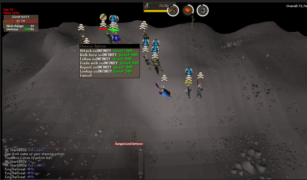 As our fellow 07 members were getting bored, I decided to start up a trip and quickly got some people on board. We decided to start up at the Wilderness GWD, and clean up anyone we seen there. After we cleared up there, we decided to go around Vet'ion and Spider Hill to see if we can get any juicy loots. As we gathered more people to around 15+, we quickly ran into multiple teams, clearing people around Spider Hill and ending after a well deserved win. Great job guys, thanks to all that came! #Anonymous Community
