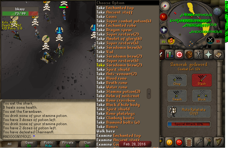 Adamant Posted February 28, 2016 Share Posted February 28, 2016 So we started the trip off with about 10-15 members and ran into brutality at bear. We quickly cleared a bunch of their members so they decided to mass up to come fight us. We ran into them again at RDG about 15 minutes later and the fight proceeded with AC quickly asserting dominance with pro calling and piles. AC quickly pulled about 20 members and never lost opts throughout the fight. Soon after this Tuf, Genocide, Judgement, and SC all came with their clans and it quickly became about AC fighting all these clans. We'd wipe 1 clan then another would rush us, however, our members were amazing with returning and we were able to hold our own against all these other teams. We ended after about 30-45 minutes of fighting, deciding to call it after these clans realized they could not take us alone. They teamed up together to try to bring us down knowing they couldn't do it solo. Great job to everyone who showed up and kept returning the whole time. Shows AC can pull good numbers at any hour of the day and on a dime. Look forward to these fights in the future Link to comment Share on other sites More sharing options...