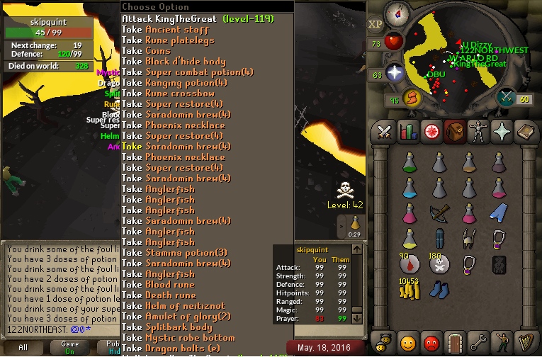 Adamant Posted May 19, 2016 Share Posted May 19, 2016 Headed out on a small trip started with about 5-7 people at rogues castle. Ran into a bunch of randoms and cleared them ezpz. We wound up pking a kid in full max gear LOL faggot get cleared stay out of multi. Then we wound up spearing out a kid for a toxic staff of the dead which was a pretty nice takeaway, DBU supplied everyone with spears as a split (I know right he actually shares?). We then ran into Brut around RDG slowly gaining numbers through the fight. We held our own even though they had more numbers and fought until AF started to rag an Brut decided to call it off. Great little fun boys, good job to everyone who showed up. spetsa 1 Link to comment Share on other sites More sharing options...